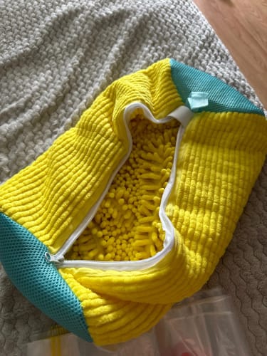 Inuti påsen fungerar tusentals mjuka fibrer som små borstar som skrubbar smuts och fläckar bort från alla vinklar, medan de skyddar dina sneakers från att slå mot trumman, sträcka sig eller förlora sin form – och håller din tvättmaskin skyddad också.